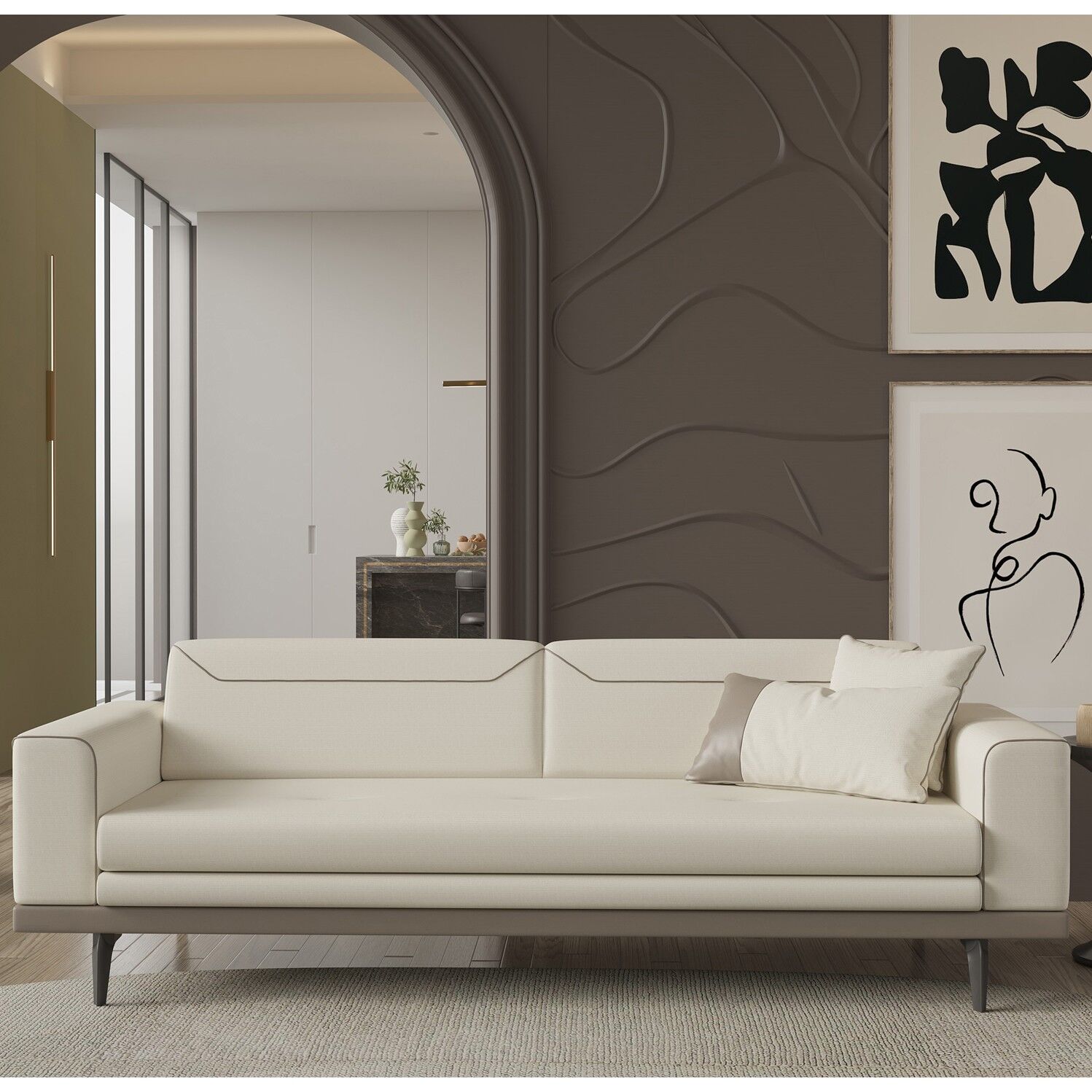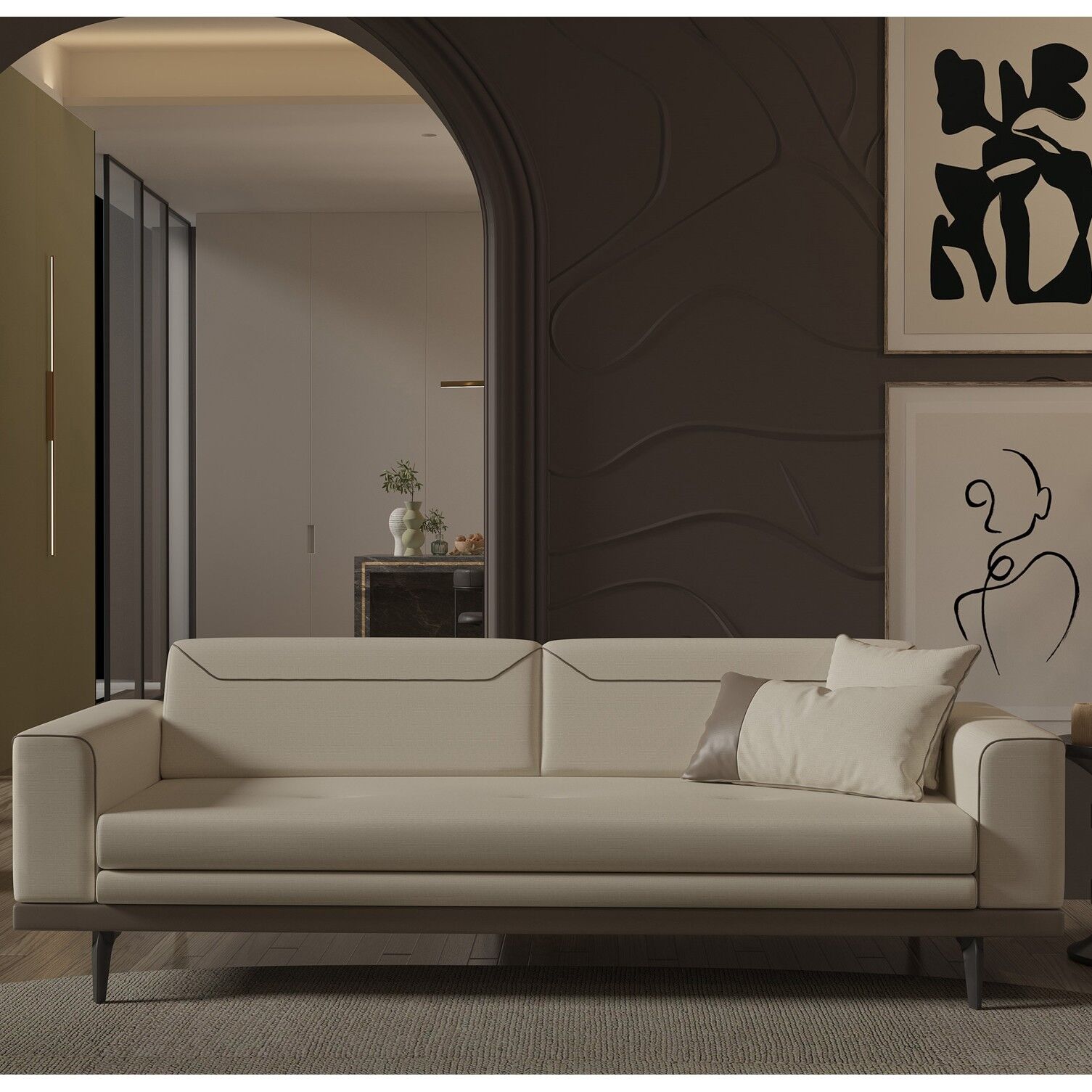 Arya 3 Seater, estetik görünüm ile fonksiyonelliği bir araya getirir. Günlük tempo, misafir ağırlama ya da rahat bir kullanım arayanlar için dengeli bir çözümdür.