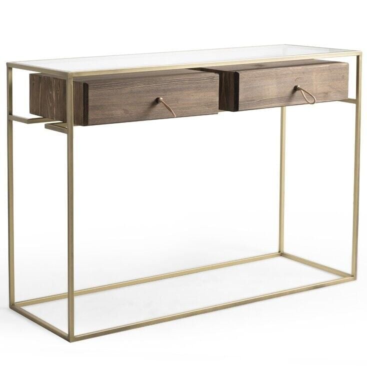SHOWDEKO Lima Vol1 Antikmessing Metall-Kommode mit zwei Schubladen, Eingangskonsole