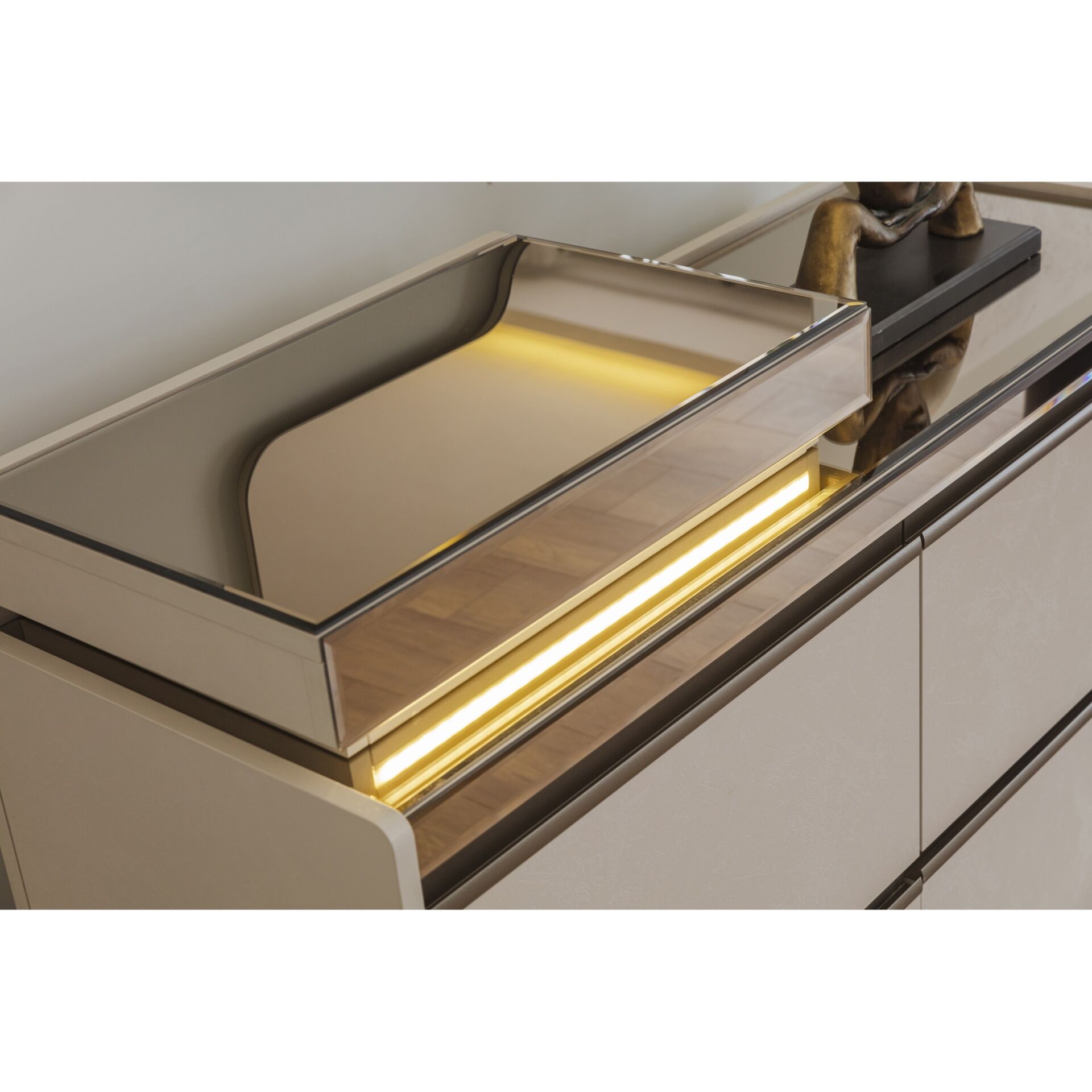 Luna Vol2 Dresser + Mirror, estetik görünüm ile fonksiyonelliği bir araya getirir. Günlük tempo, misafir ağırlama ya da rahat bir kullanım arayanlar için dengeli bir çözümdür.