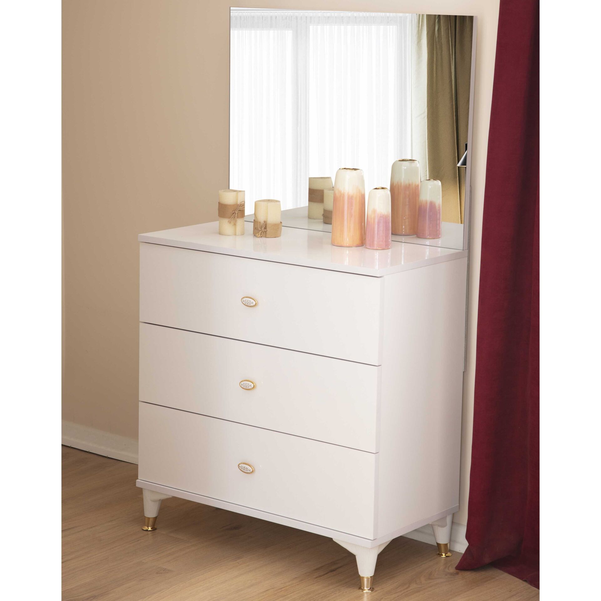 Madrid Dresser + Mirror, modern çizgisi ve işlevsel yapısıyla günlük kullanımda konfor sunar. Kaliteli malzeme detayları ve sağlam konstrüksiyonuyla uzun ömürlü bir deneyim vadeder. Farklı dekorasyon stilleriyle uyumlu tasarımıyla Madrid Dresser + Mirror, yaşam alanınıza zarif bir dokunuş katar.