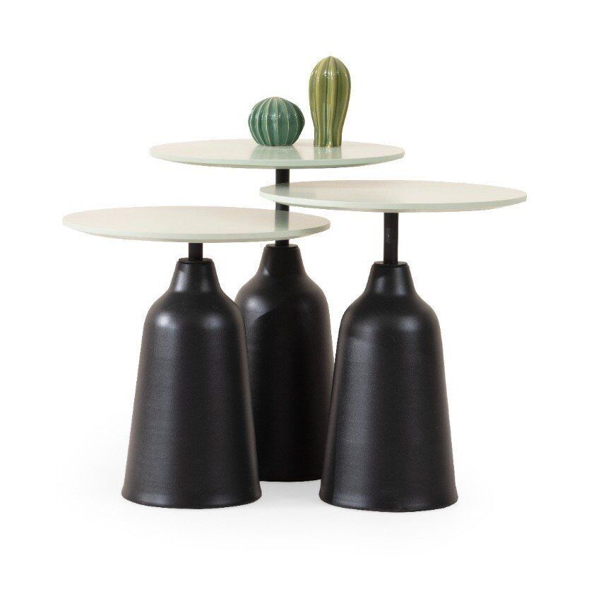 Minty Üçlü Boyali MDF Ust Tablali Metal Tabanli Ceviz Zigon Sehpa Seti 43x43cm