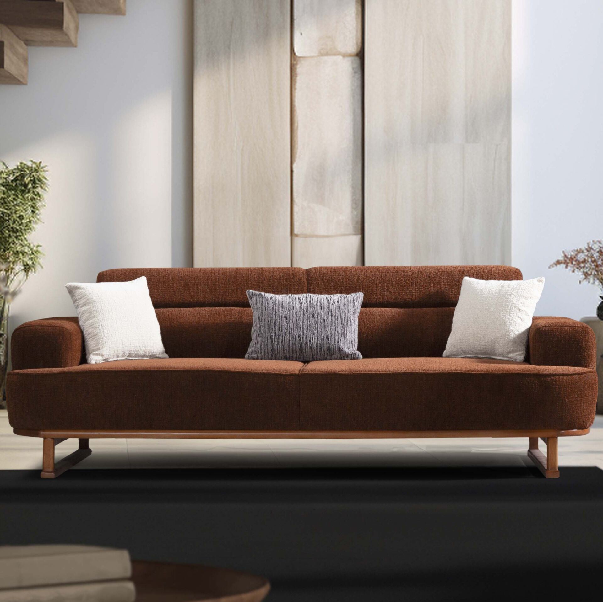 Woody 3 Seater, estetik görünüm ile fonksiyonelliği bir araya getirir. Günlük tempo, misafir ağırlama ya da rahat bir kullanım arayanlar için dengeli bir çözümdür.