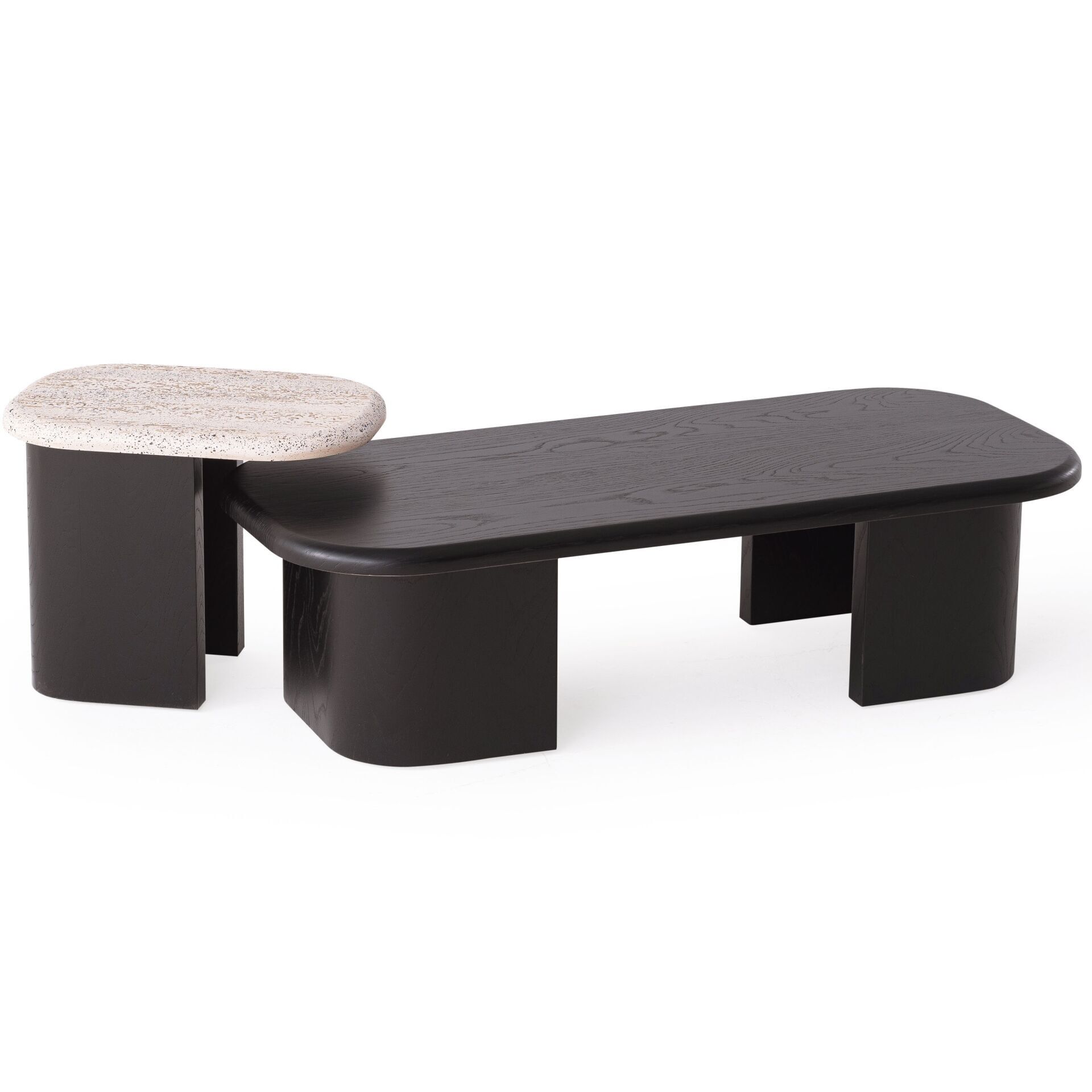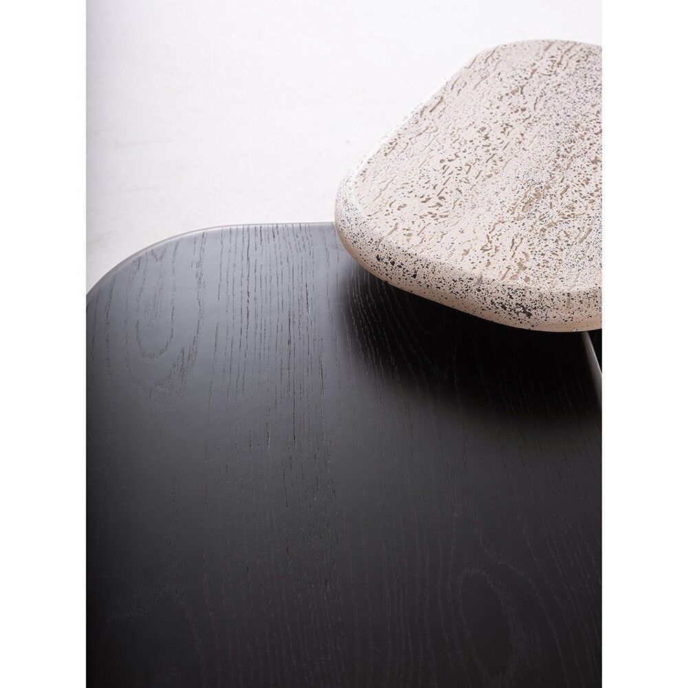 SHOWDEKO SHW1012 İkili Ahşap Siyah Traverten Orta + Yan Sehpa Seti