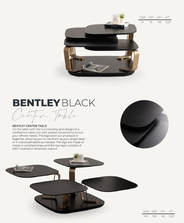 Bentley Vol2 Center Table, estetik görünüm ile fonksiyonelliği bir araya getirir. Günlük tempo, misafir ağırlama ya da rahat bir kullanım arayanlar için dengeli bir çözümdür.