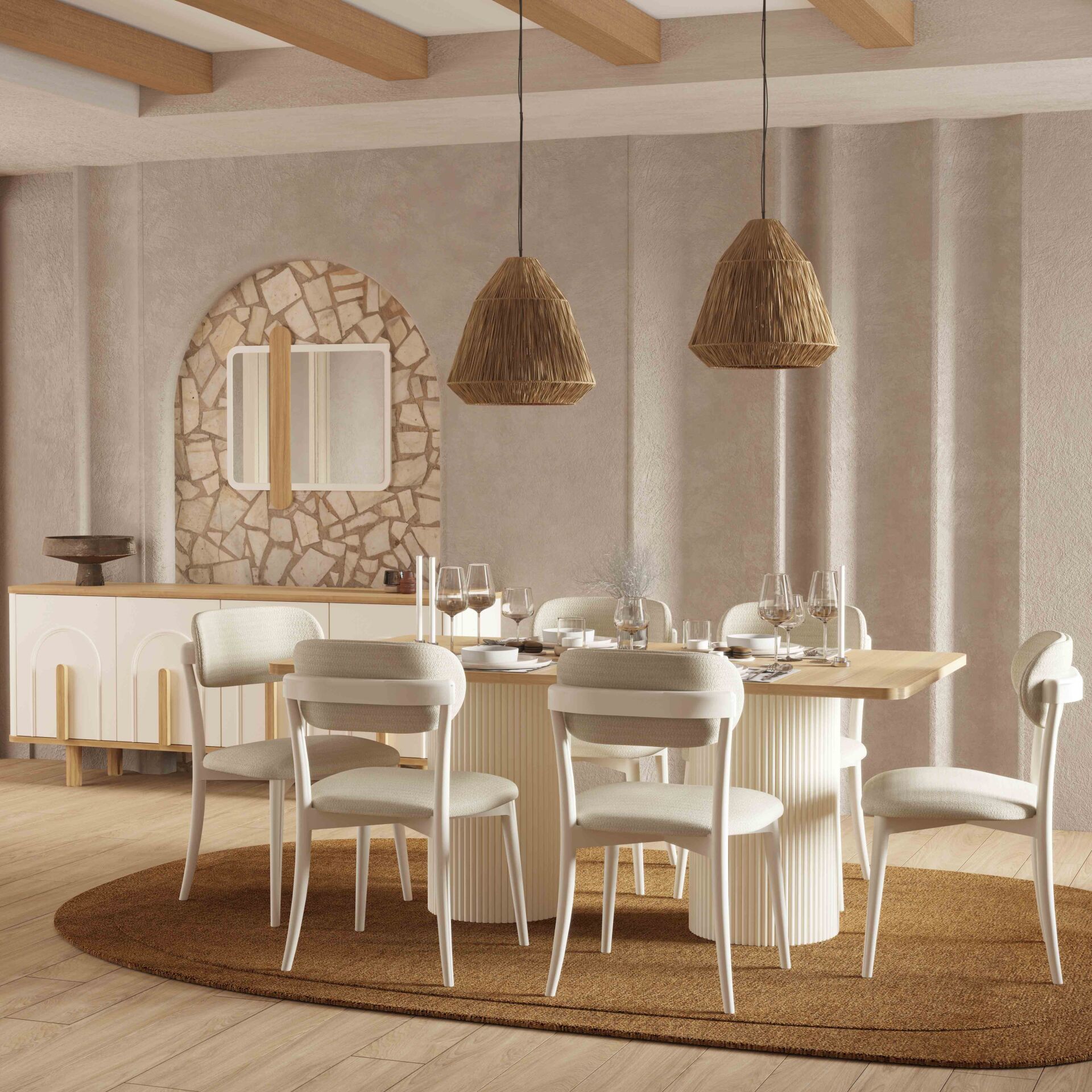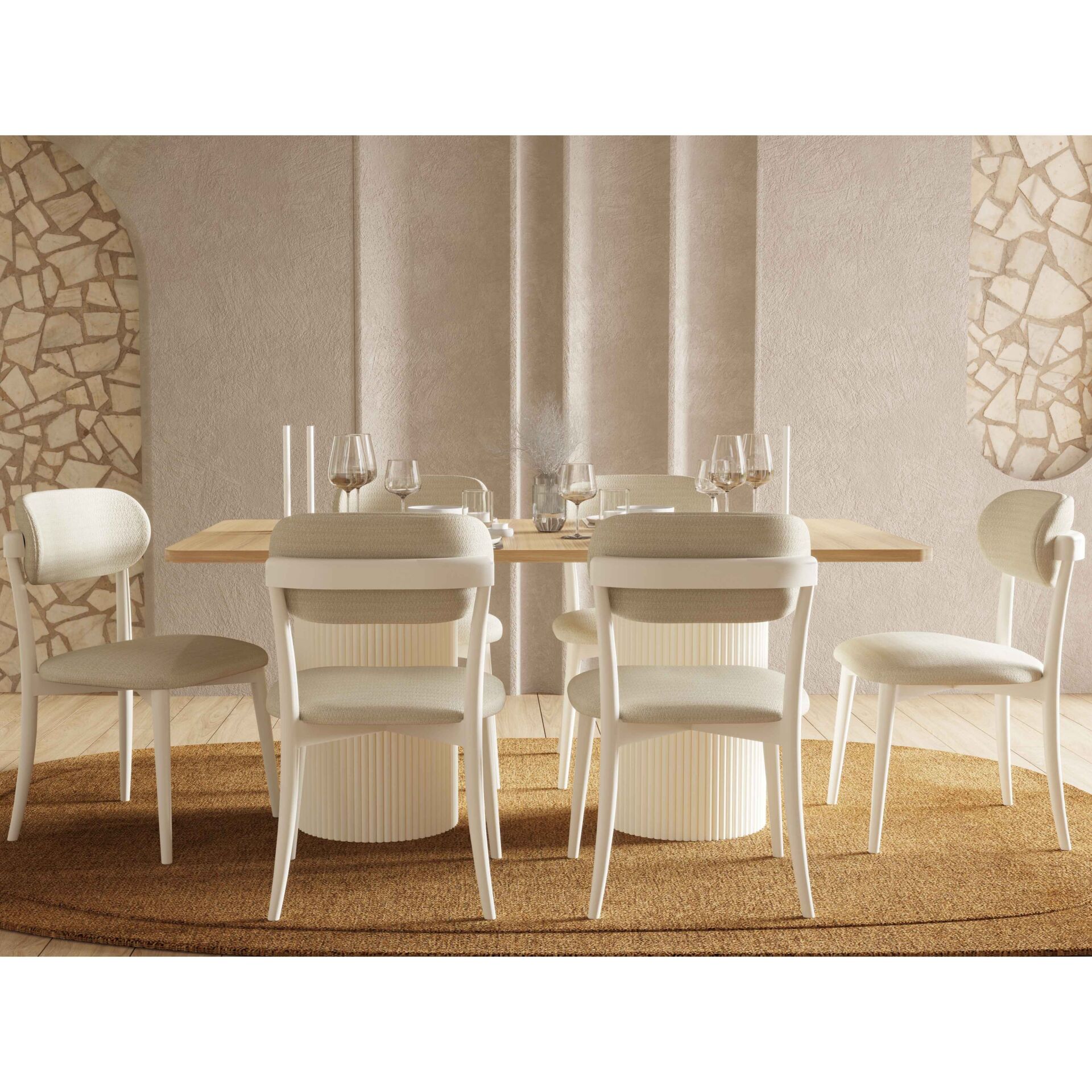 Bohem Plus Dining Room, estetik görünüm ile fonksiyonelliği bir araya getirir. Günlük tempo, misafir ağırlama ya da rahat bir kullanım arayanlar için dengeli bir çözümdür.