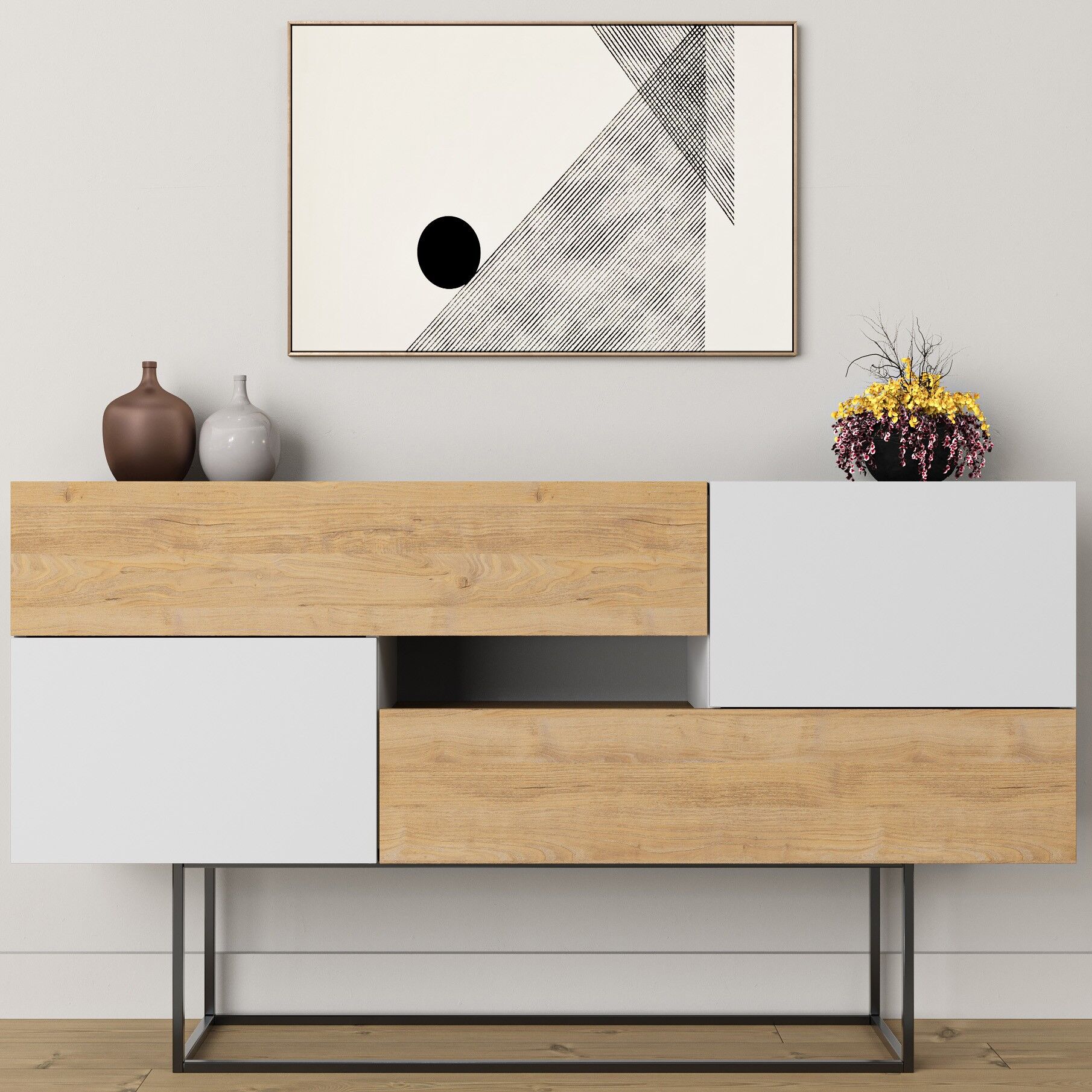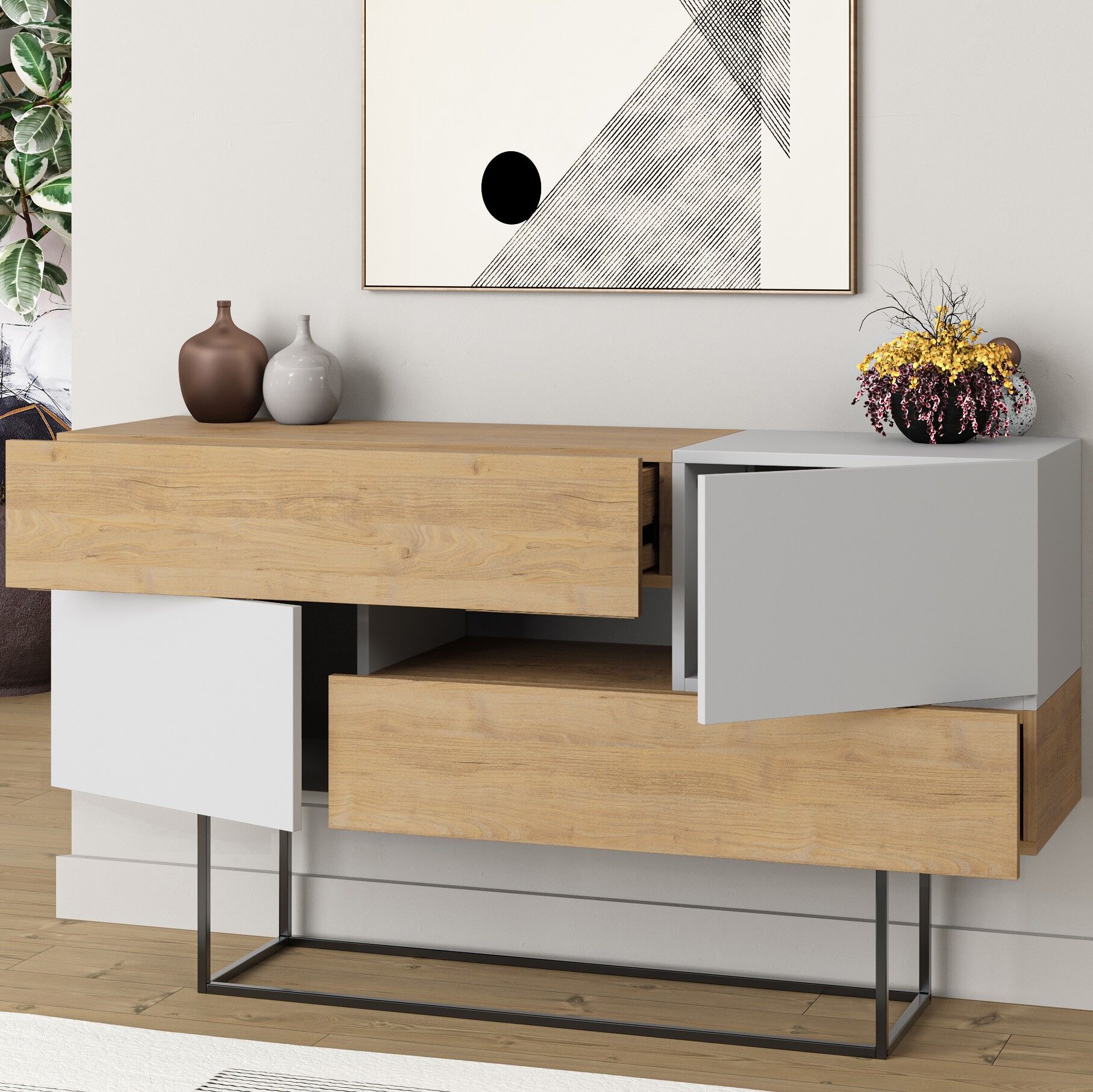 Eros Console Oak - White, estetik görünüm ile fonksiyonelliği bir araya getirir. Günlük tempo, misafir ağırlama ya da rahat bir kullanım arayanlar için dengeli bir çözümdür.