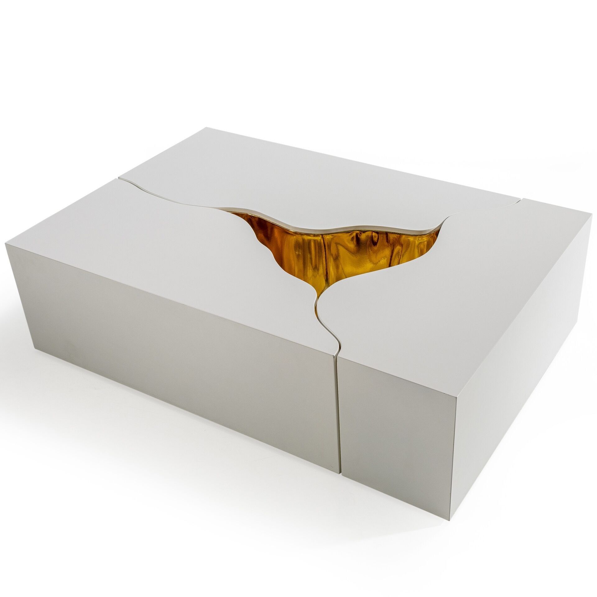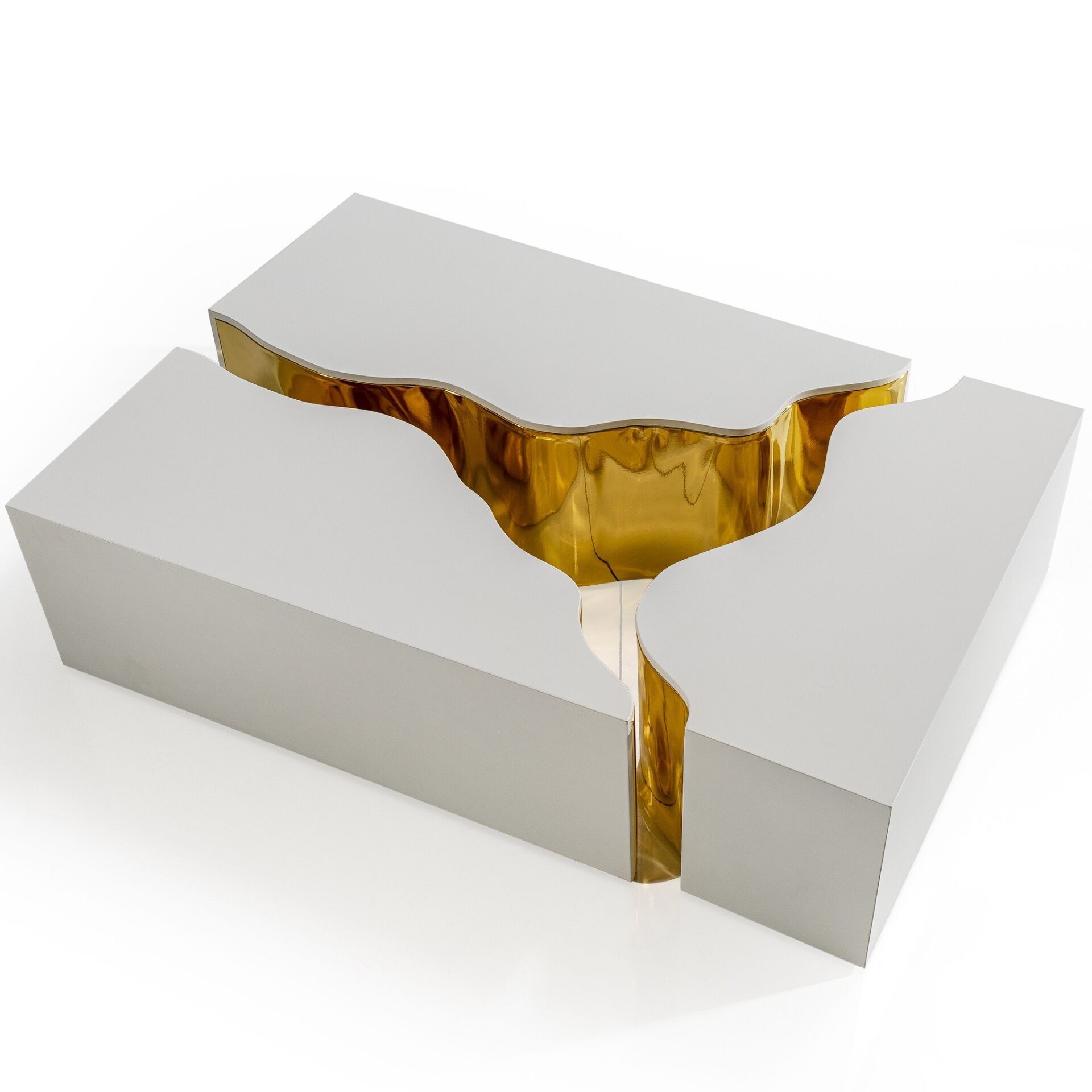 Italian Altın Mat Kırık Beyaz Renk Boya Dikdörtgen Orta Sehpa 119x69cm, farklı kombinlere kolayca uyum sağlar.