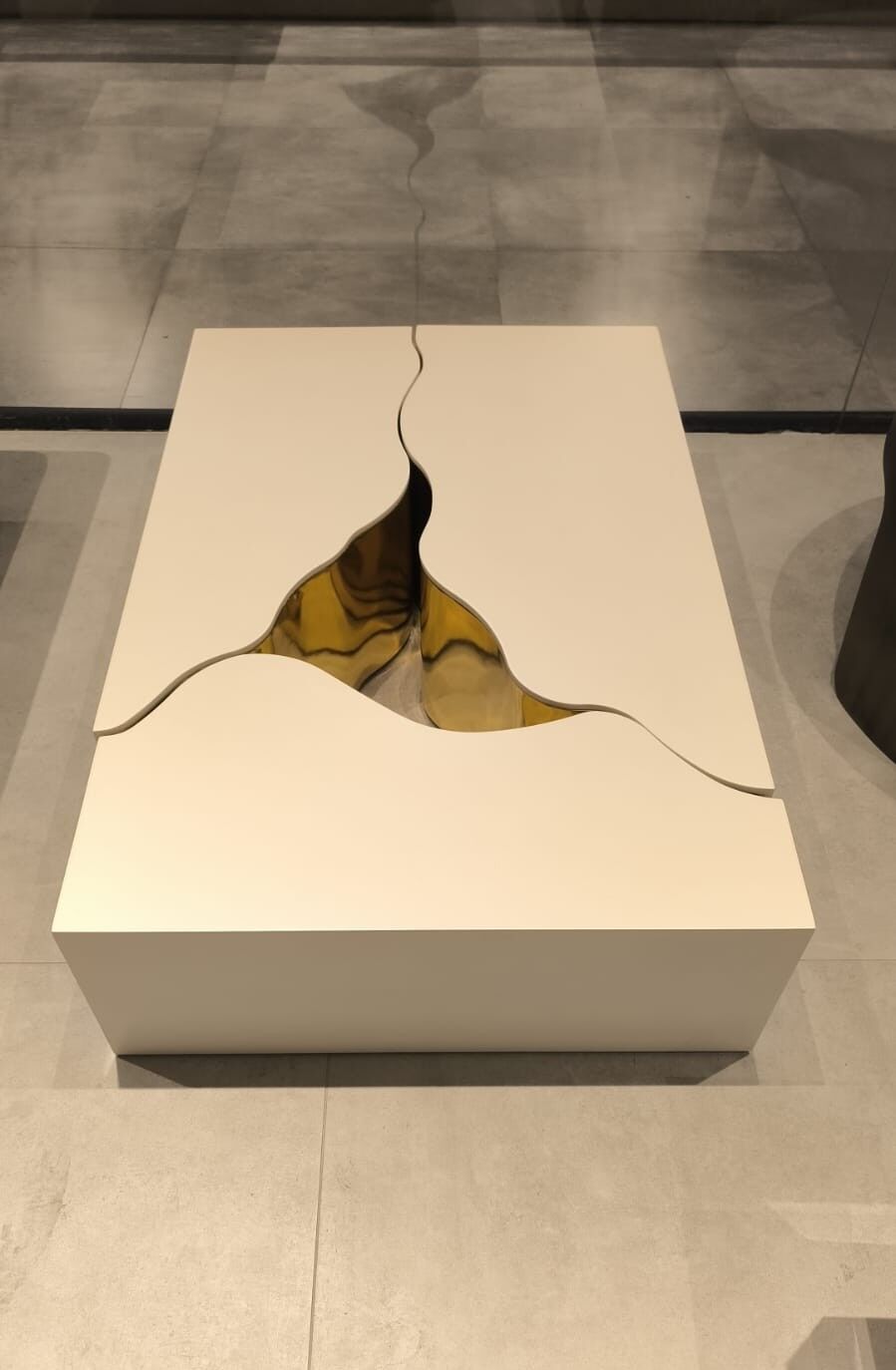 Neden Italian Altın Mat Kırık Beyaz Renk Boya Dikdörtgen Orta Sehpa 119x69cm?