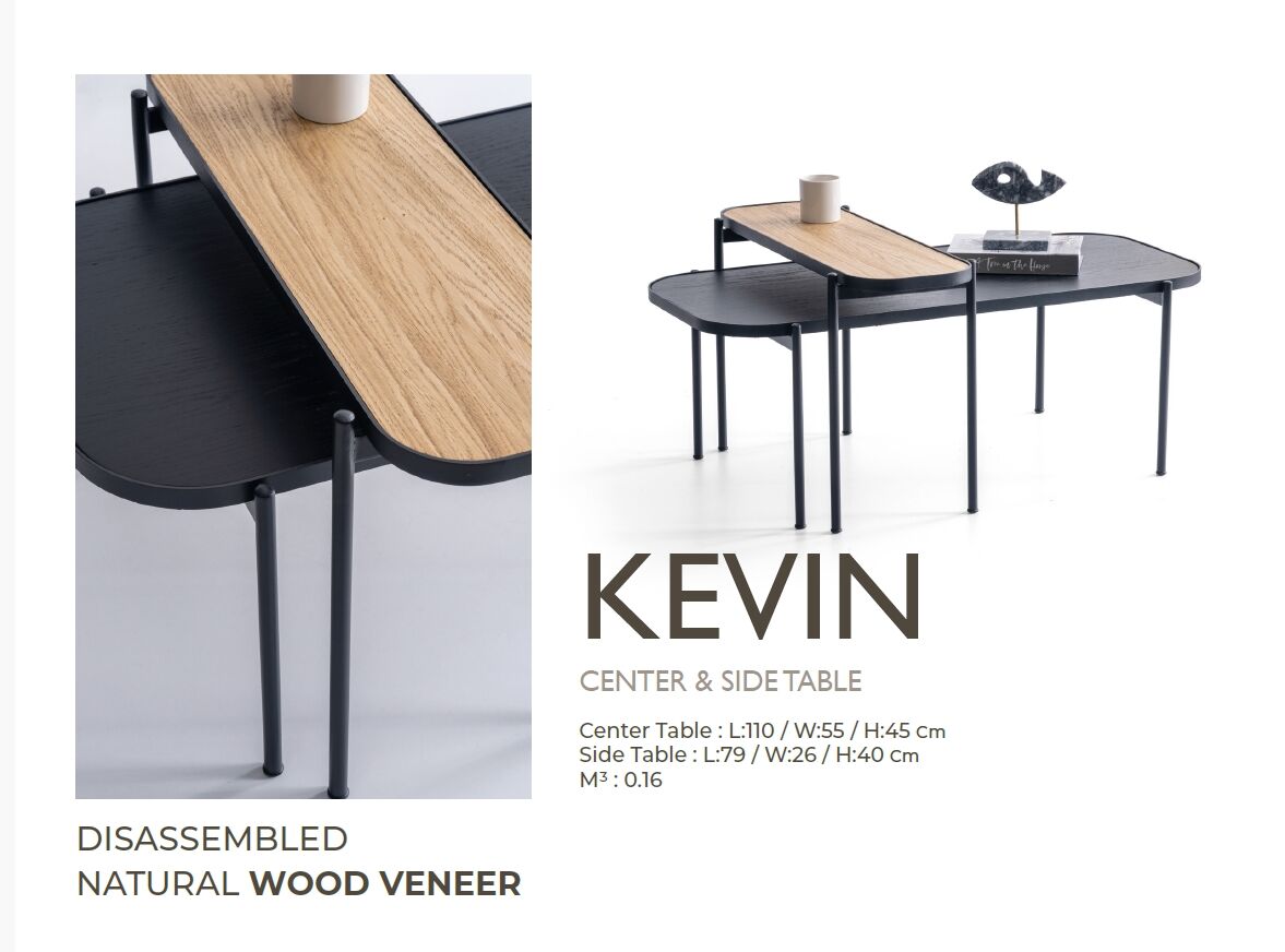 Kevin İkili Ahşap Metal Orta + Yan Sehpa Seti 110x55cm, günlük kullanımda konforu ve uzun ömürlü performansı bir araya getirmek üzere tasarlanmıştır.