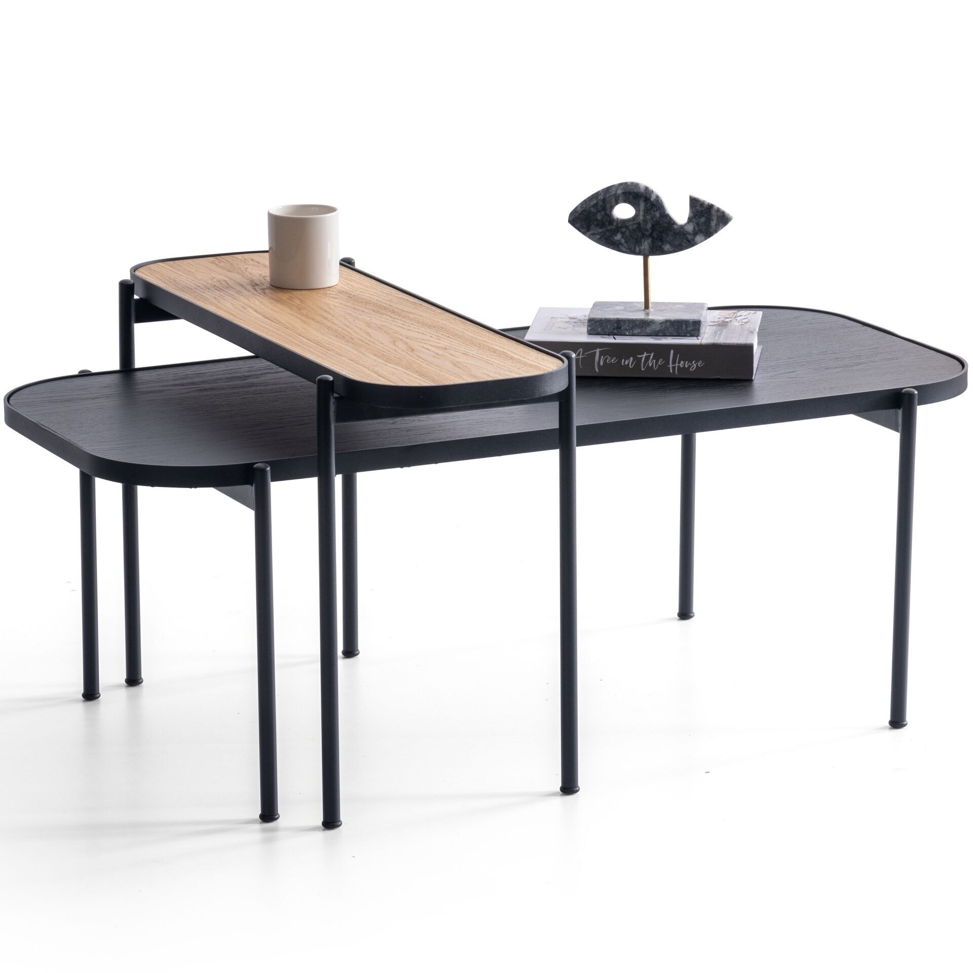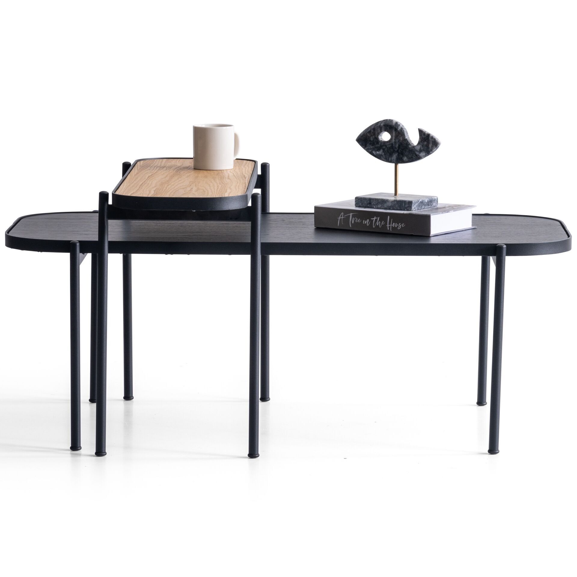 Neden Kevin İkili Ahşap Metal Orta + Yan Sehpa Seti 110x55cm?