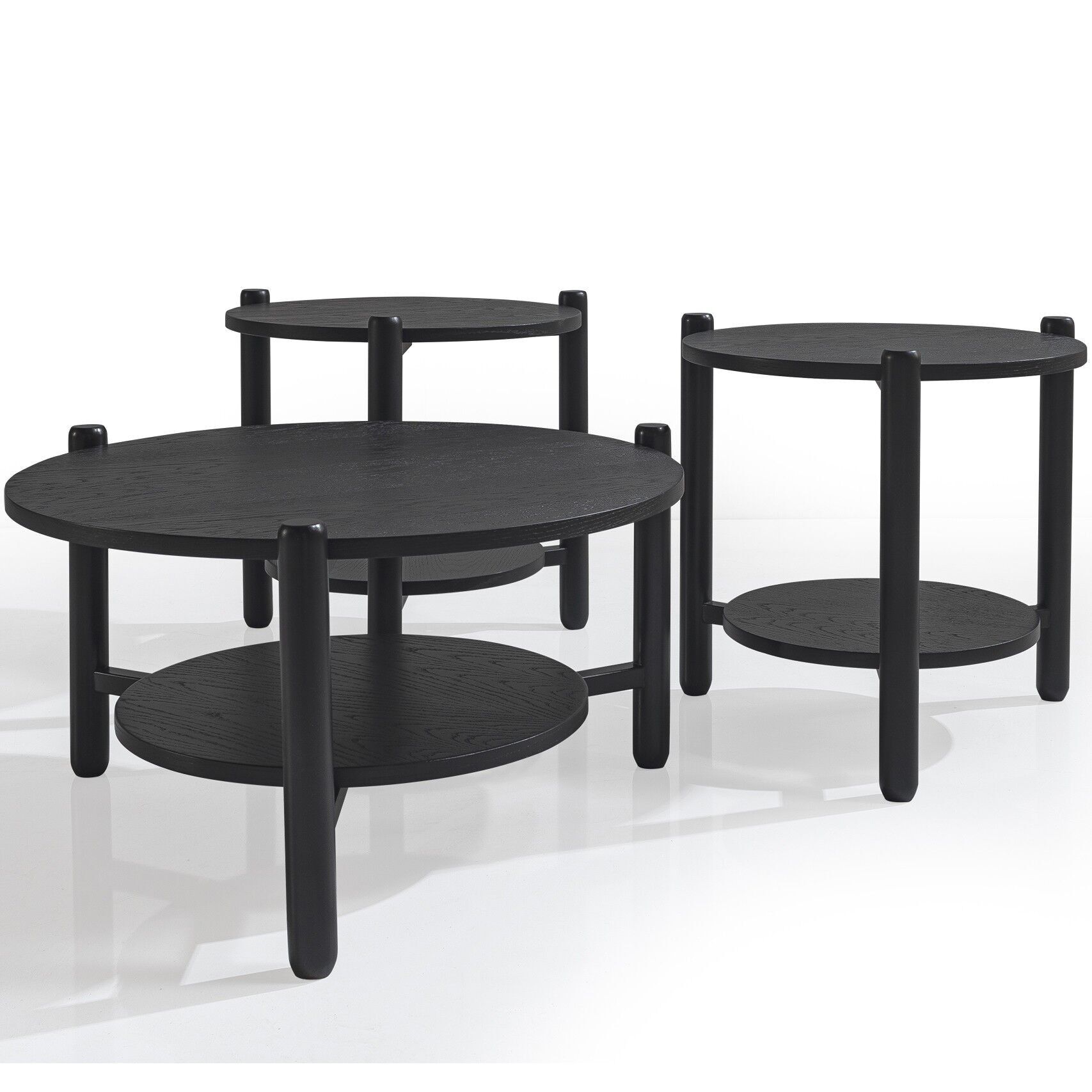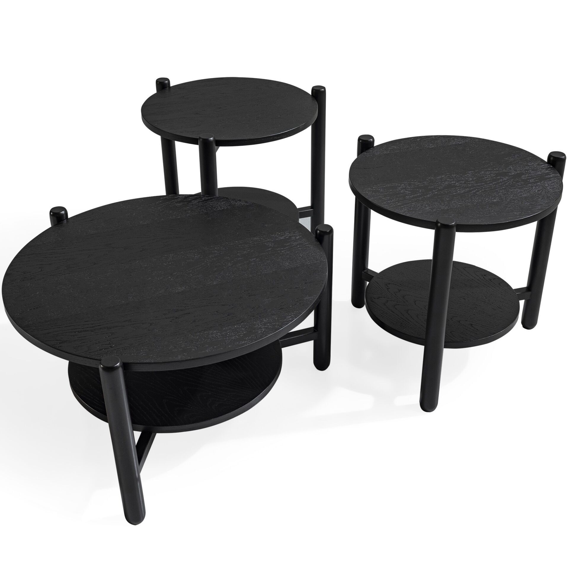 Monaco Üçlü Siyah Renk Ahşap Kaplama Orta + Yanx2 Adet Sehpa Seti 80x80cm, farklı kombinlere kolayca uyum sağlar.