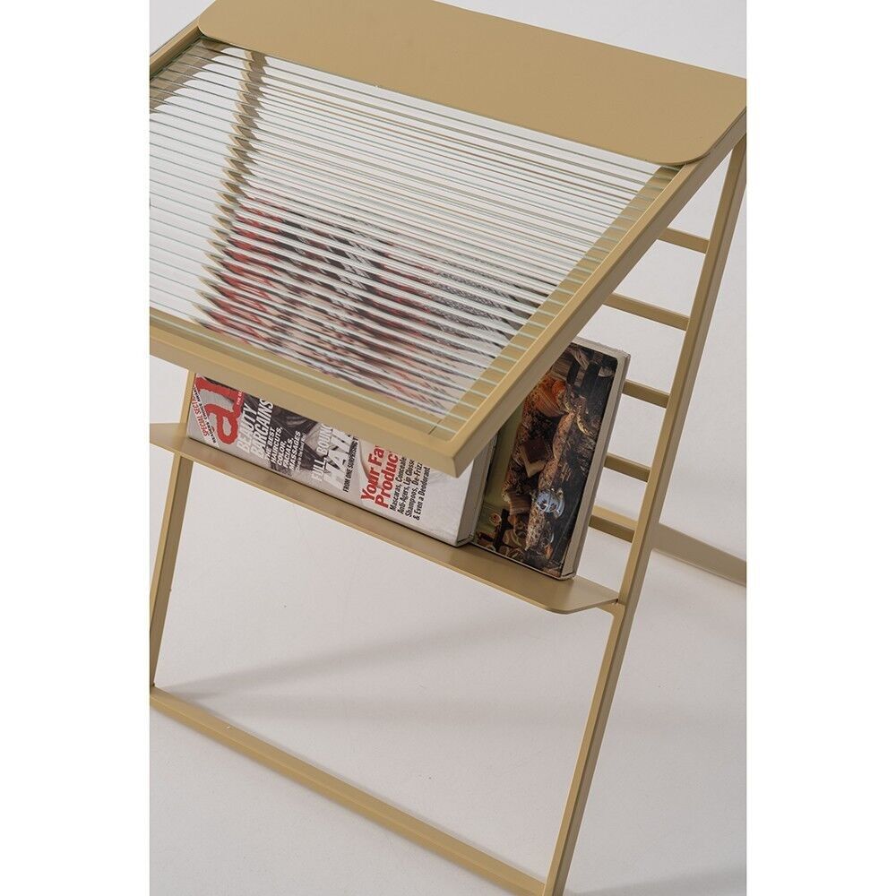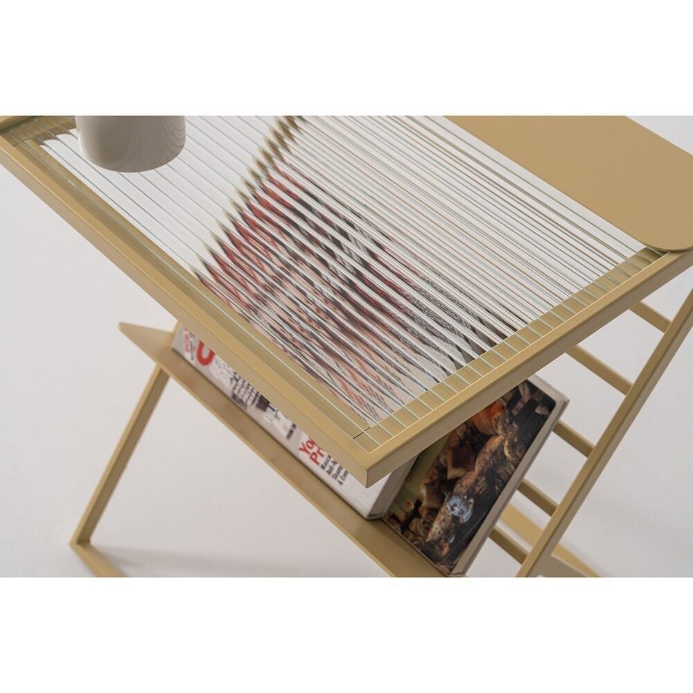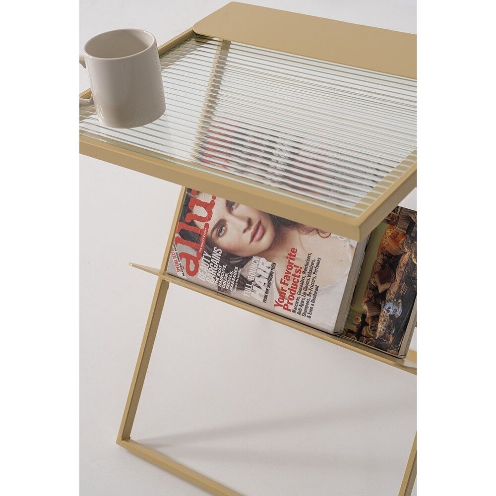 SHOWDEKO Nixi Metal Eskitme Altın Renk Cam Rafli Magazinlik Gazetelik Yan Sehpa