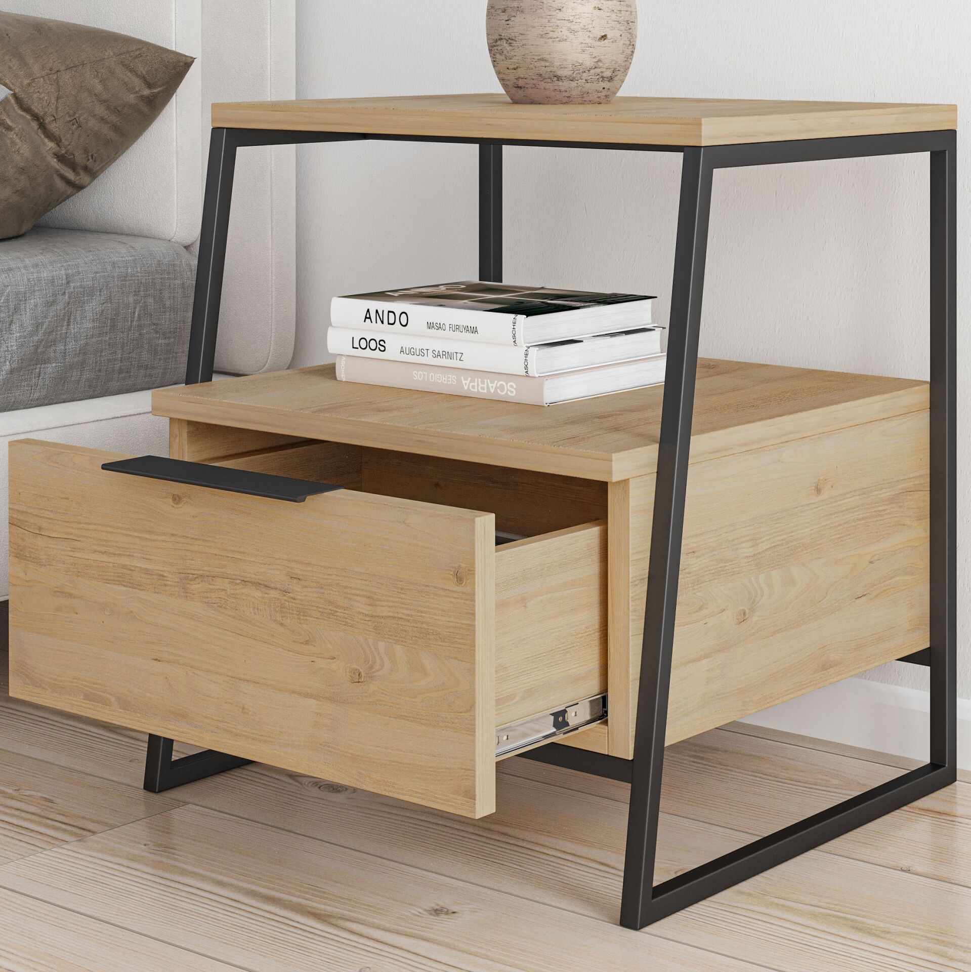 Pal Nightstand With Drawer Oak, estetik görünüm ile fonksiyonelliği bir araya getirir. Günlük tempo, misafir ağırlama ya da rahat bir kullanım arayanlar için dengeli bir çözümdür.