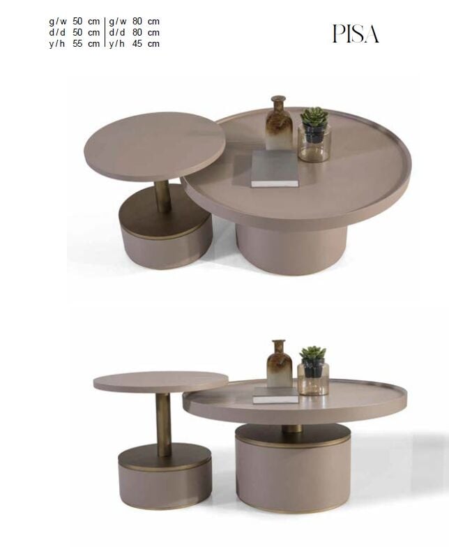 Pisa Kumtaşı Rengi İkili Ahşap Boya Orta + Yan Sehpa Seti Ç80cm/50cm Pisa Vol1 Center & Side Tables, modern tasarımı ve dayanıklı yapısıyla yaşam alanınıza şıklık katar. Kullanışlı ve estetik detaylarıyla ev dekorasyonunuzu tamamlayan ideal bir seçimdir. DS3182