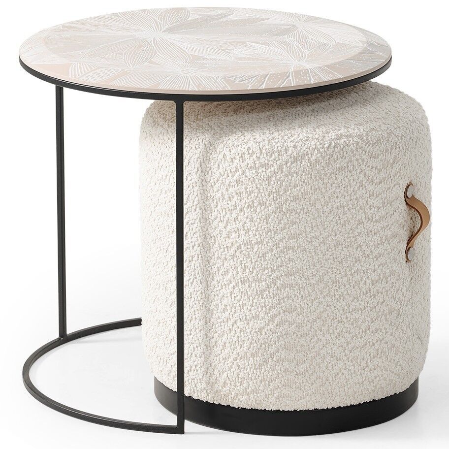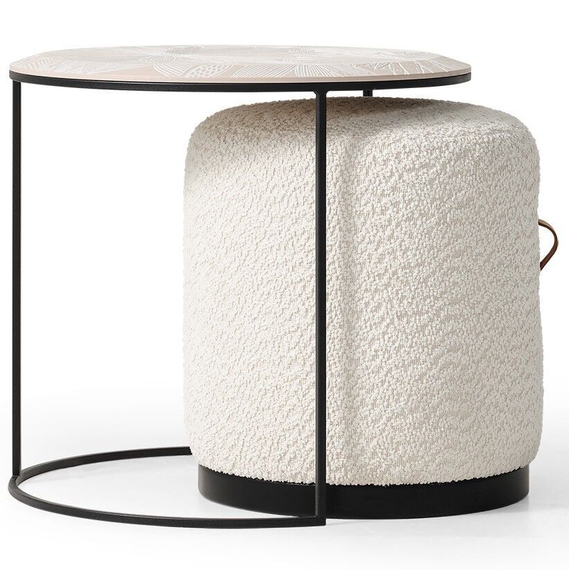 Yan sehpa ve puf birlikte, her güne pratiklik ve estetik katıyor.