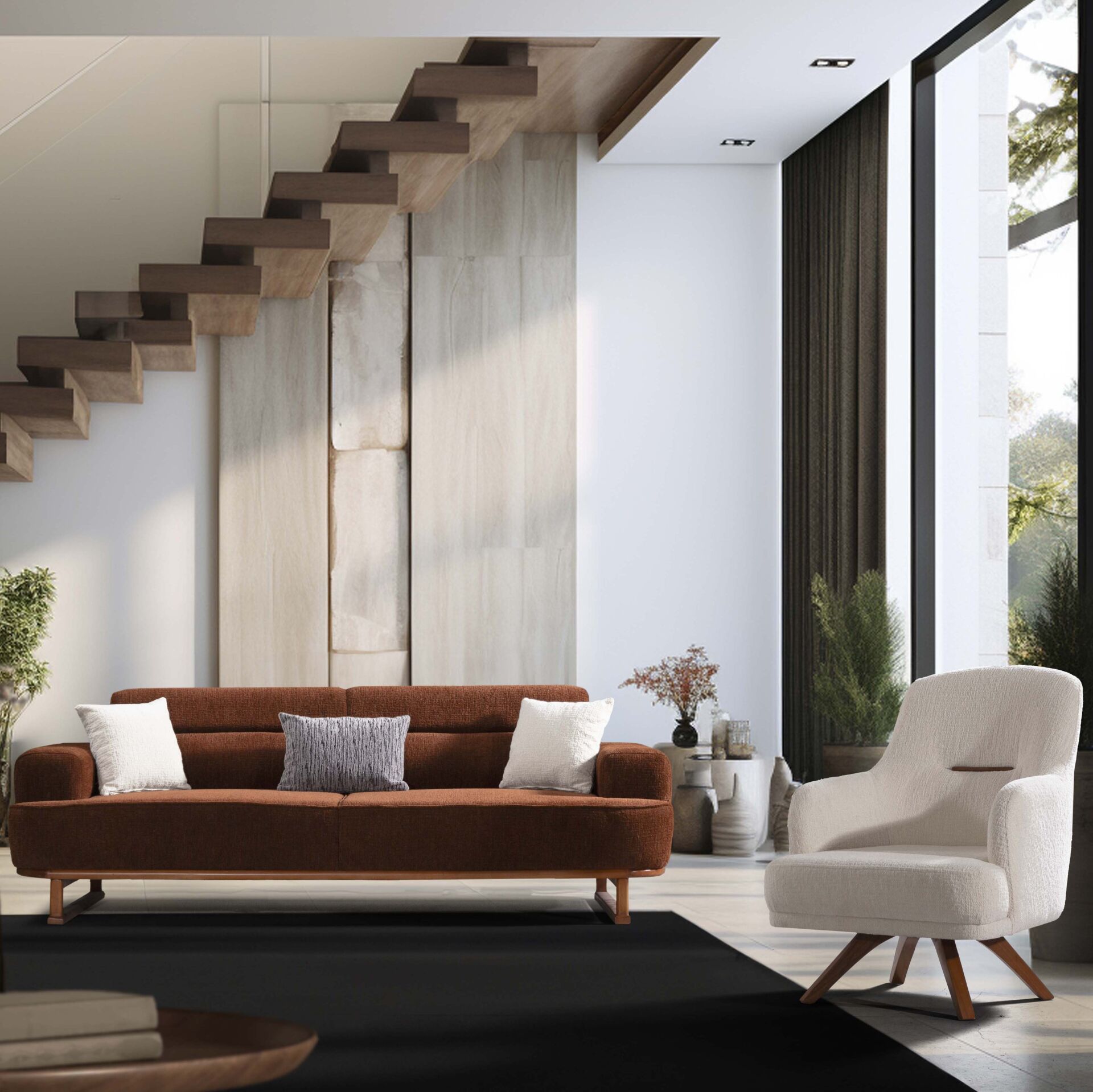Woody 1 Seater, estetik görünüm ile fonksiyonelliği bir araya getirir. Günlük tempo, misafir ağırlama ya da rahat bir kullanım arayanlar için dengeli bir çözümdür.