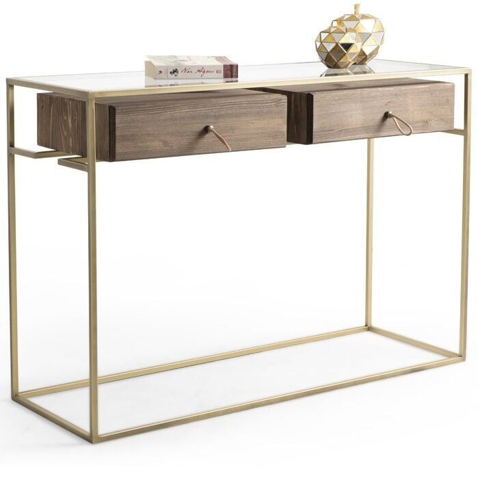 Lima Vol1 Lima Vol1 Eskitme Pirinç Metal İki Çekmeceli Antre Dresuar Konsol G120xY80xcm