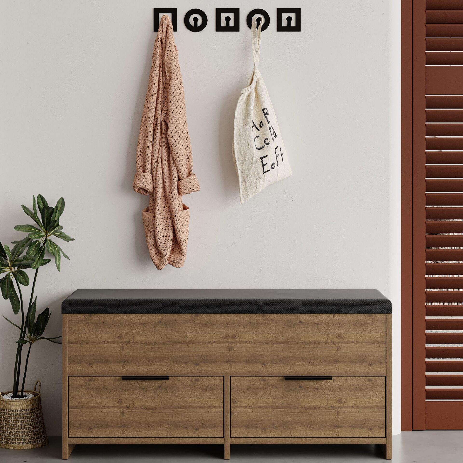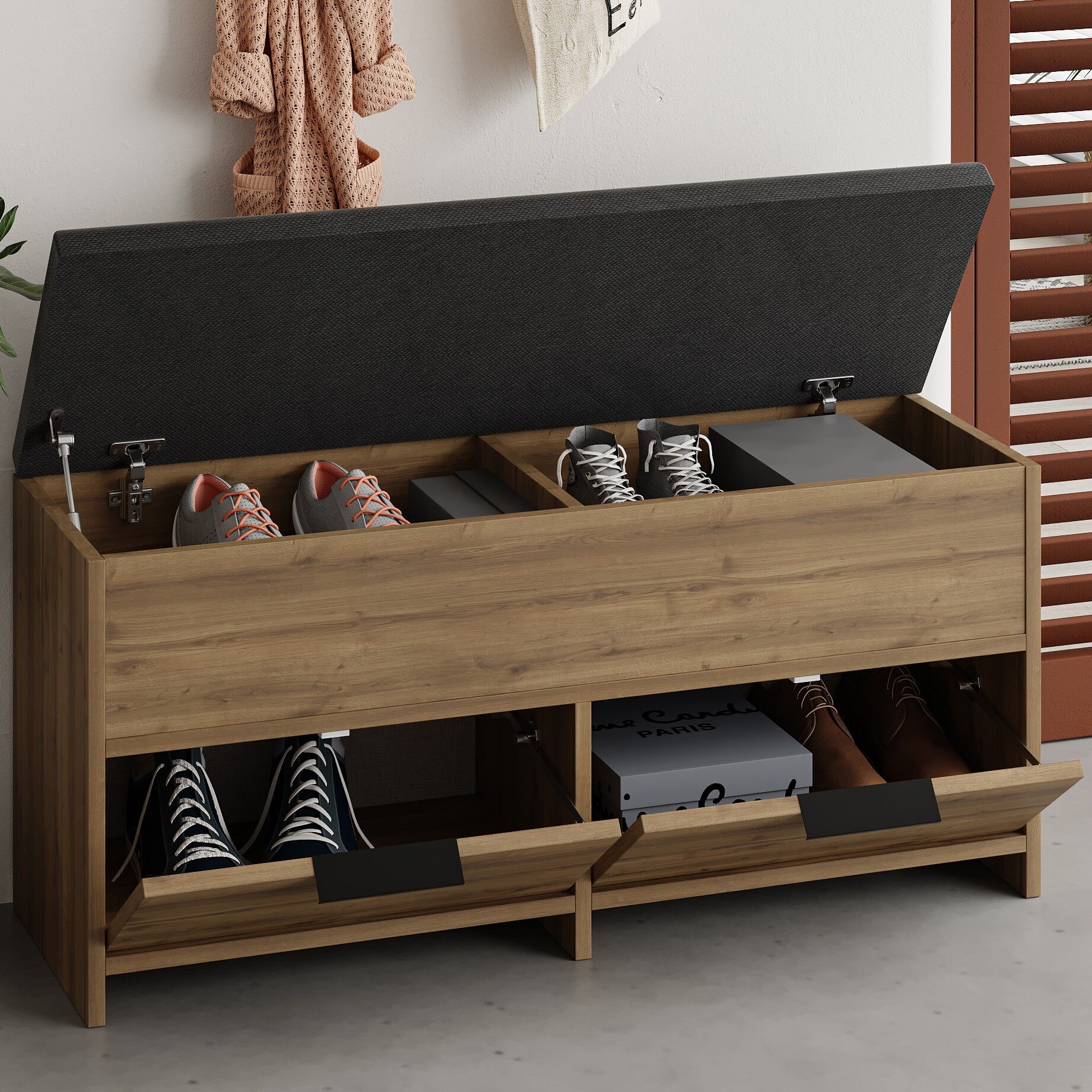 Cove Shoe Bench Hitit, farklı kombinlere kolayca uyum sağlar. Günlük tempo, ofis veya hafta sonu planlarında size eşlik edecek şekilde düşünülmüştür.
