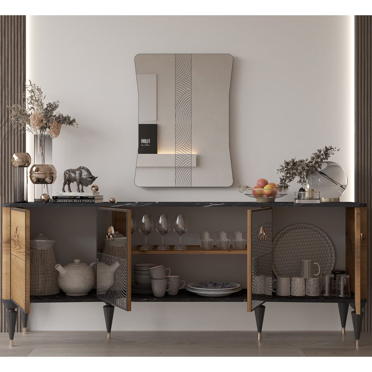Cross Console & Mirror, estetik görünüm ile fonksiyonelliği bir araya getirir. Günlük tempo, misafir ağırlama ya da rahat bir kullanım arayanlar için dengeli bir çözümdür.