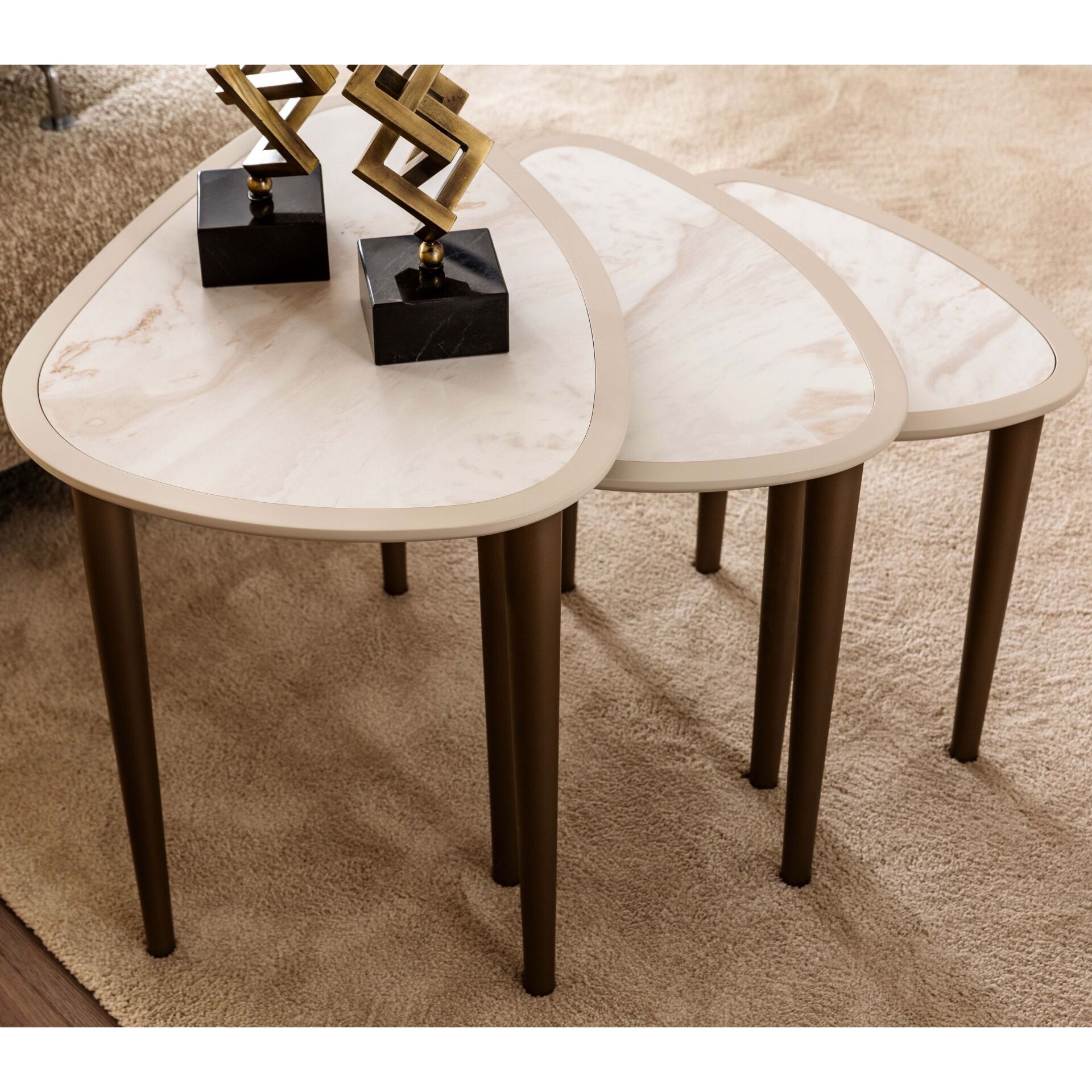 Efes Üçlü Zigon Sehpa Seti, farklı kombinlere kolayca uyum sağlar.