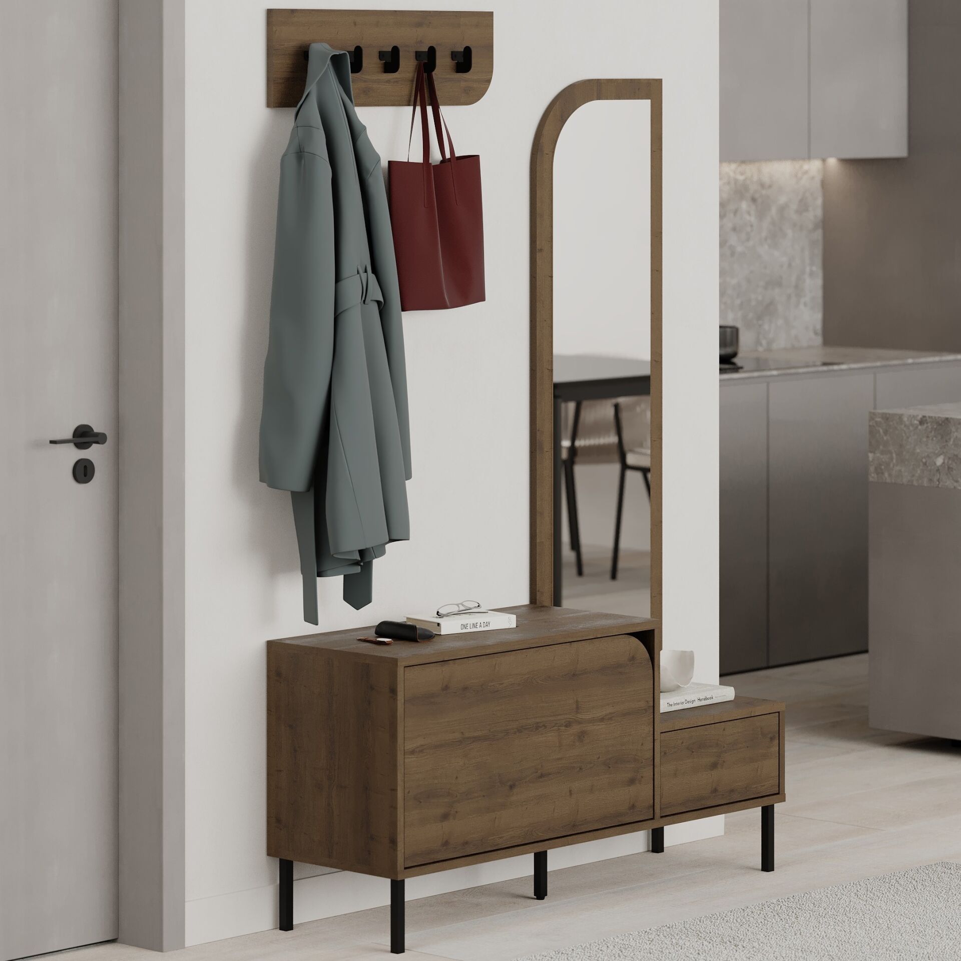 Mila Shoe Cabinet - Hanger Hitit, farklı kombinlere kolayca uyum sağlar. Günlük tempo, ofis veya hafta sonu planlarında size eşlik edecek şekilde düşünülmüştür.