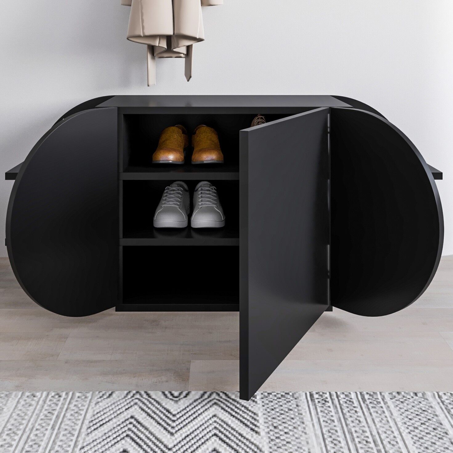 Pozy Shoe Bench Black Büte, farklı kombinlere kolayca uyum sağlar. Günlük tempo, ofis veya hafta sonu planlarında size eşlik edecek şekilde düşünülmüştür.