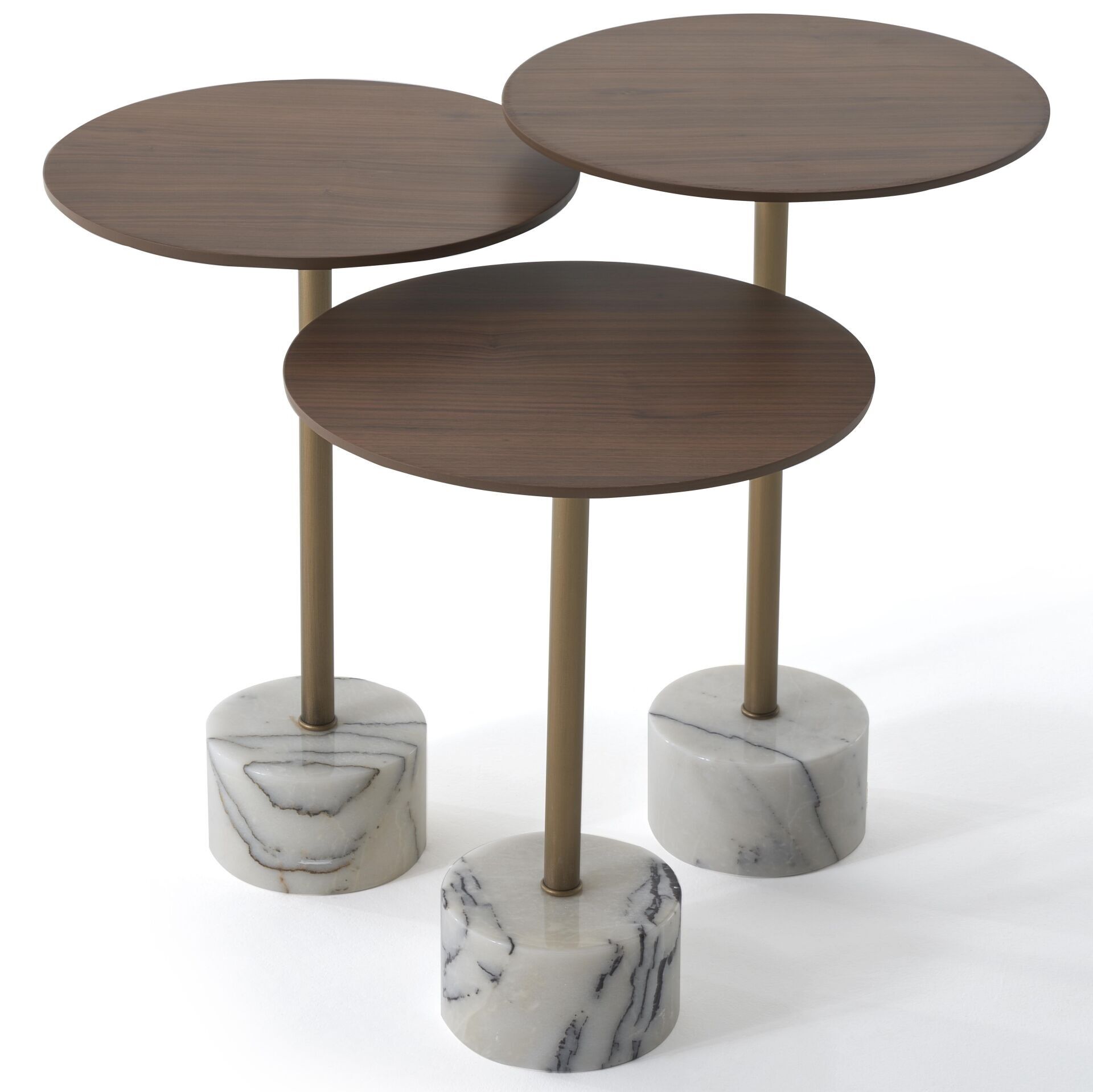 SHOWDEKO PS-103-L Doğal Ceviz Kaplamalı Üst Tabla Mermer Ayaklı Üçlü Zigon Sehpa Seti 39x39cm