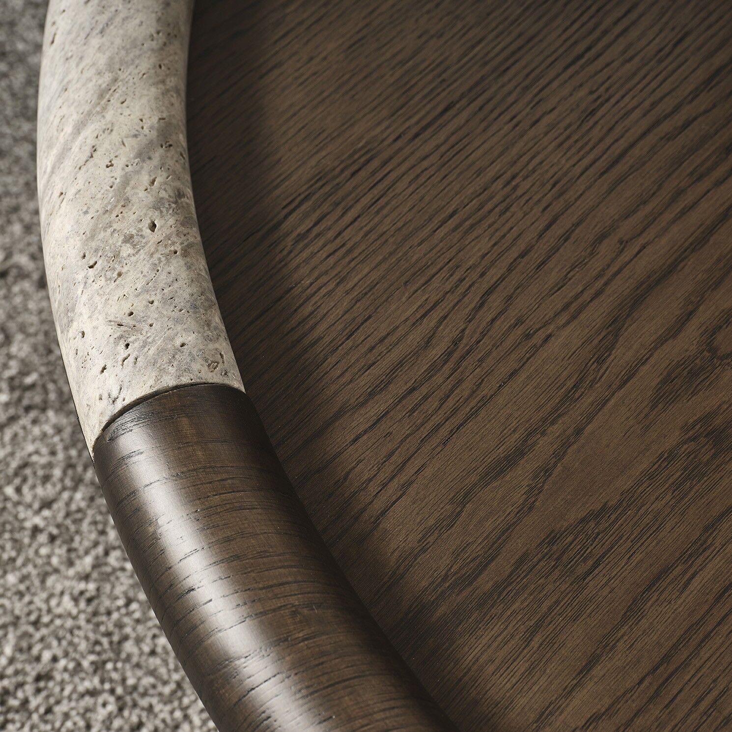 Sehpanın ayağı traverten görünümlüdür.