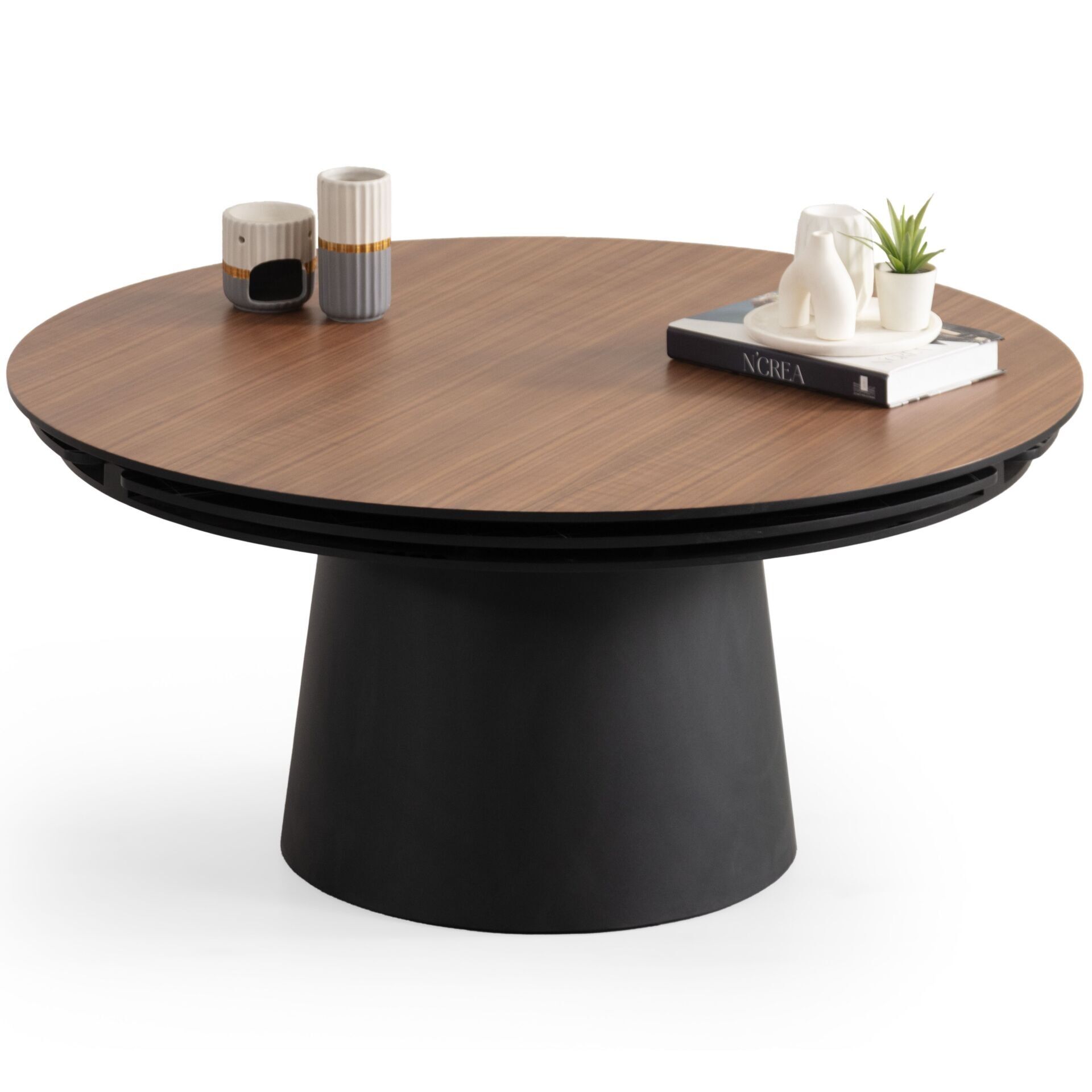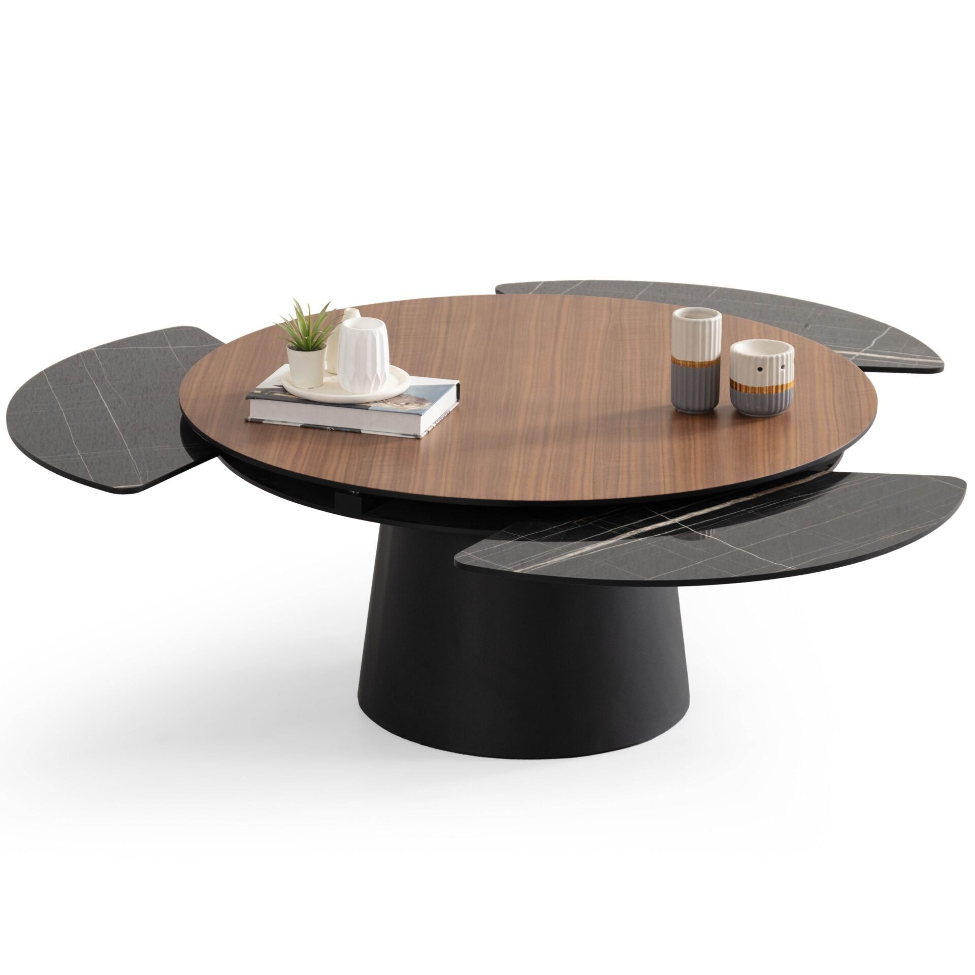 Açılabilir mekanizmalı ayaklı doğal ceviz kaplama orta sehpa.