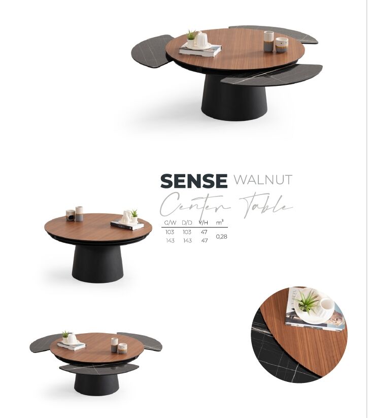 Sense Vol2 Center Table, estetik görünüm ile fonksiyonelliği bir araya getirir. Günlük tempo, misafir ağırlama ya da rahat bir kullanım arayanlar için dengeli bir çözümdür.